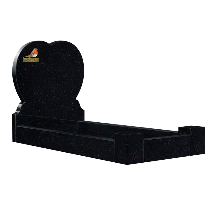 Heart with ogee shoulder and Robin etched (optional) kerb memorial.
