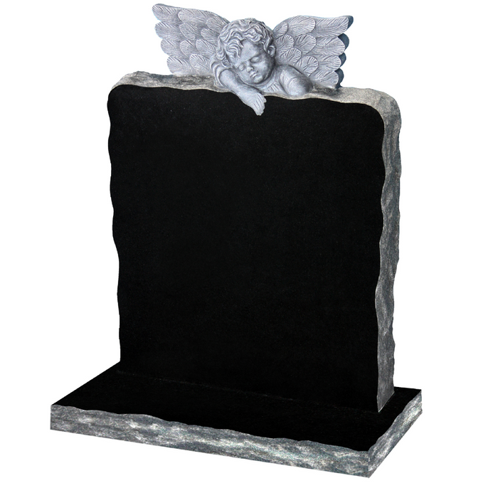 OG-41 - Black Granite Memorial with Hand Carved Cherub and Natural Sides - Lawn Memorial - From £1854.85