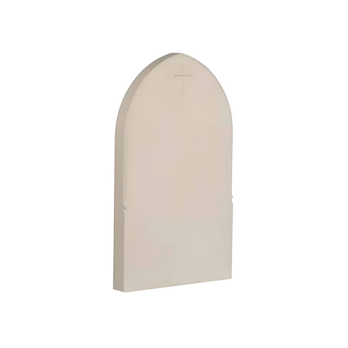 This traditionally styled memorial is crafted from Portland Stone and features a timeless arched top with a subtle integral cross carving. The joggle fit design offers a clean, seamless connection between headstone and base, enhancing the memorial’s classical appearance. The soft, natural tone of Portland Stone is well-suited to both traditional and contemporary settings.