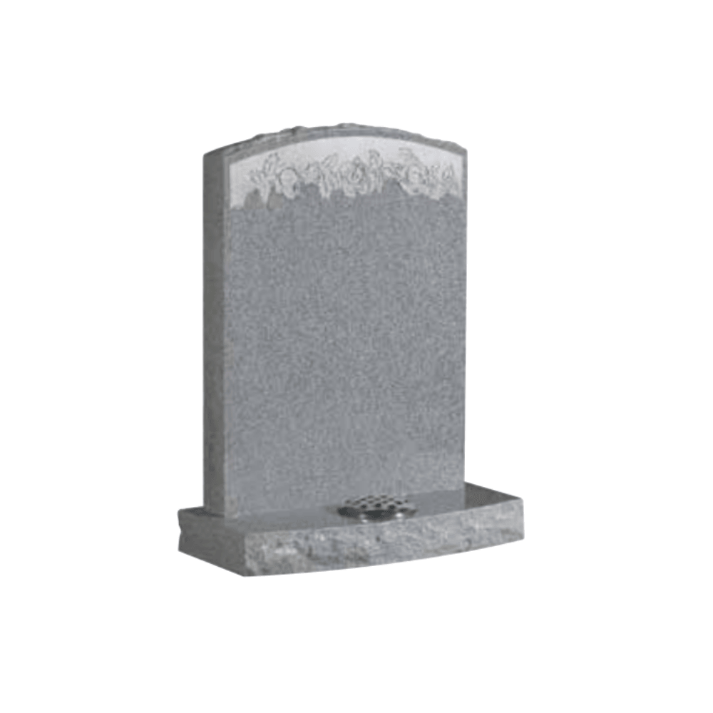 This elegant memorial is crafted from durable Pearl Grey Granite and features a gently arched top, complemented by a finely detailed carved floral design across the upper section. The soft grey tones offer a sense of calm and dignity, making it a fitting choice for a wide range of settings. Its polished finish and classic silhouette provide a timeless tribute, while the solid base includes an integrated flower holder for added personalisation.