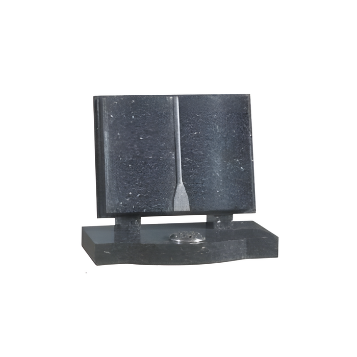 Crafted from striking Blue Pearl Granite, this lawn memorial features a polished open book design with a central tassel carving. The shimmering natural flecks in the granite enhance the richness of the surface, offering a dignified and contemporary finish. Supported by twin plinths and resting on a sturdy base with an integrated flower holder, this design is ideal for a lasting tribute to a loved one.