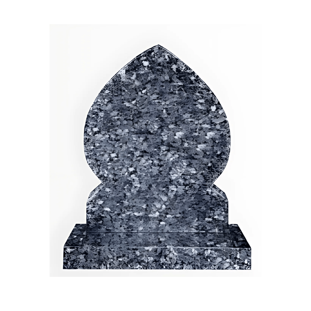 An Arabic influenced lawn memorial crafted from striking Blue Pearl granite, featuring elegant curves and refined detailing inspired by traditional Middle Eastern design.