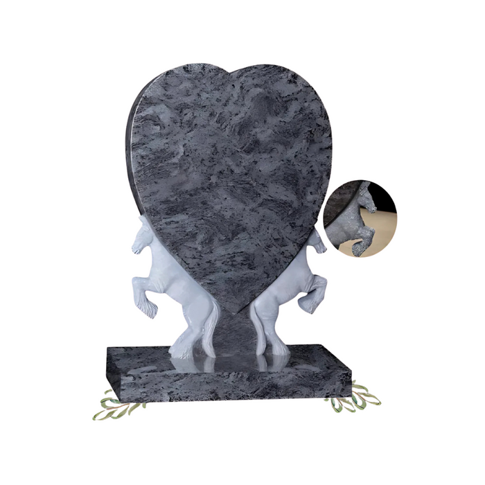 OG-98 - Bahama Blue Hand Carved 3D Horses with Heart Design - Lawn Memorial - From £1995.85