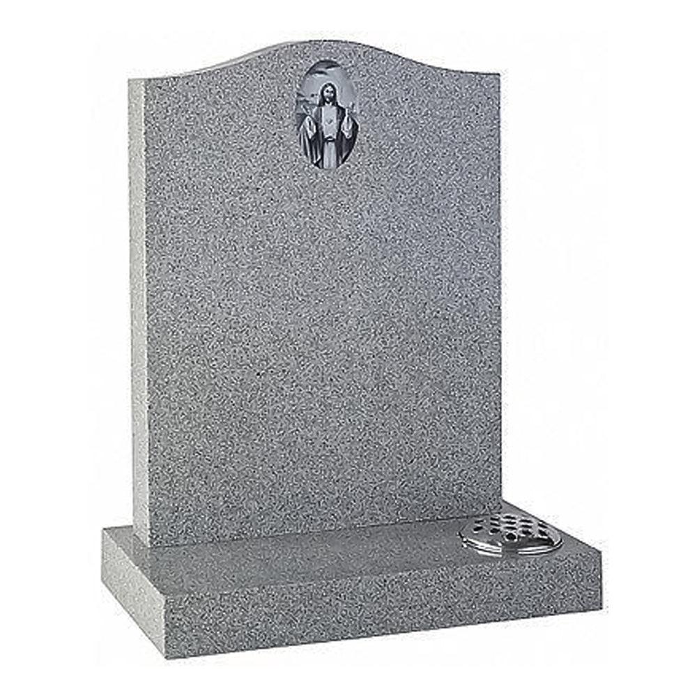 All polished Silver grey granite ogee top lawn memorial with two flower holders. Ornament not included.
